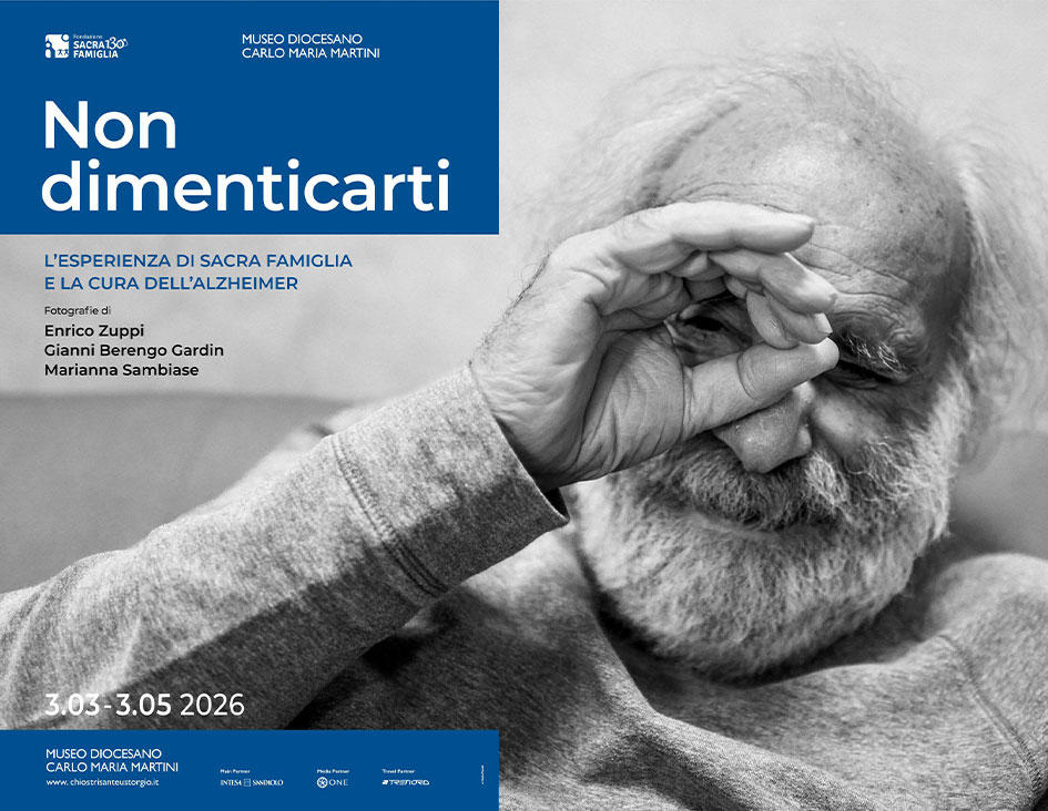 Al Museo Diocesano Carlo Maria Martini di Milano NON DIMENTICARTI. L’esperienza di Sacra Famiglia e la cura dell’Alzheimer, la mostra aperta fino al 3 maggio, curata da Giovanna Calvenzi in collaborazione con la Fondazione Sacra Famiglia di Cesano Boscone (MI).